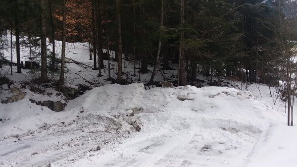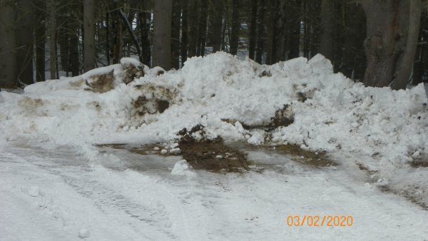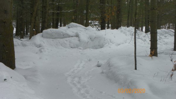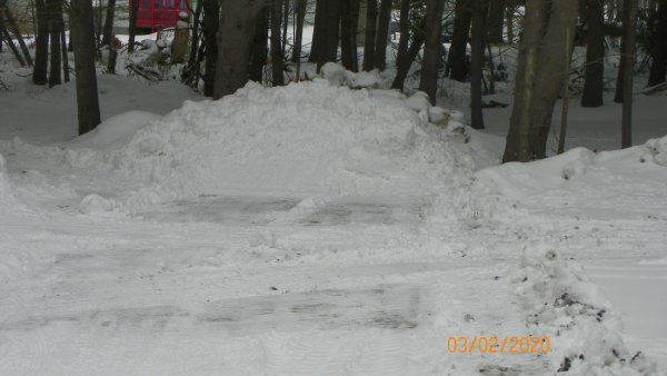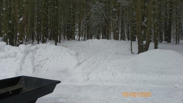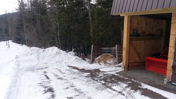It's definitely nice to have a place to put it! We both know it can really add up in our areas. Here in front of the house it gets pushed and kept open for the dogs and the tractor with loads of wood to be brought in.... From the driveway into 2 spots..... The way down to the pole barn.... Everything from the pole barn roof dumps in the rear. About 5.5 ft deep back there....