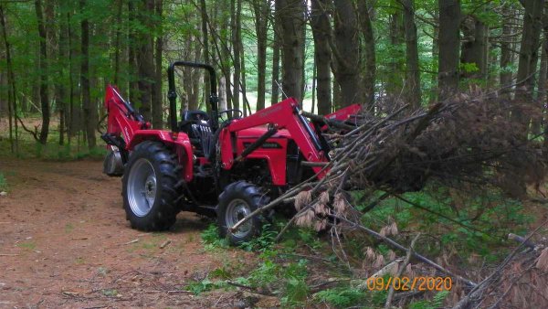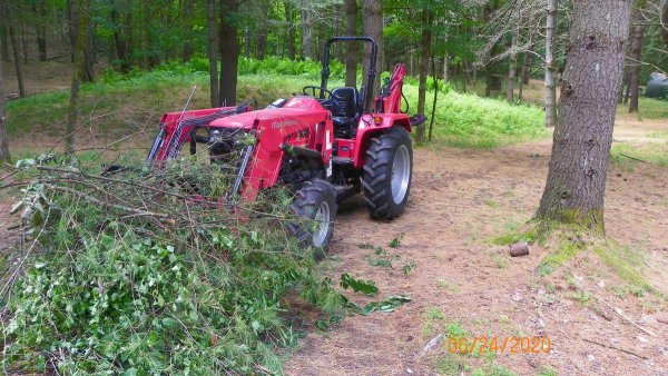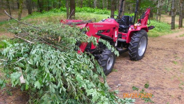 The muggy weather has moved in with possible damaging winds coming in later on. When I called my neighbor the other day who has a small fireplace outside, I ask her if she needed any Pine for it and she said yes so today I brought down two loads with the tractor.