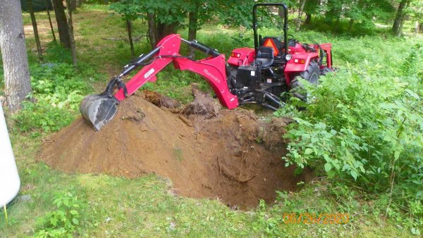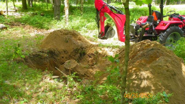 Hopefully tomorrow, I pull three or four stumps with the 4540 that are all different sizes and then fill the holes back in with sand. That will give us a new trail down near the propane tank.