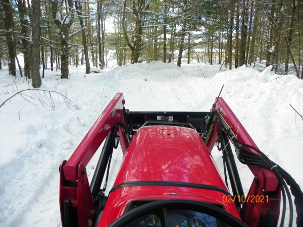 I used the 4540 today, I plowed out the end of my neighbor's driveway and moved a snowbank that was getting high at the end of our driveway, it was hard to see a vehicle coming on that side when I went out the driveway yesterday. We had planned on putting in some cherry an mix that with some of the better stuff we have but while I was plowing, some pines were losing their branches so we'll wait another day.