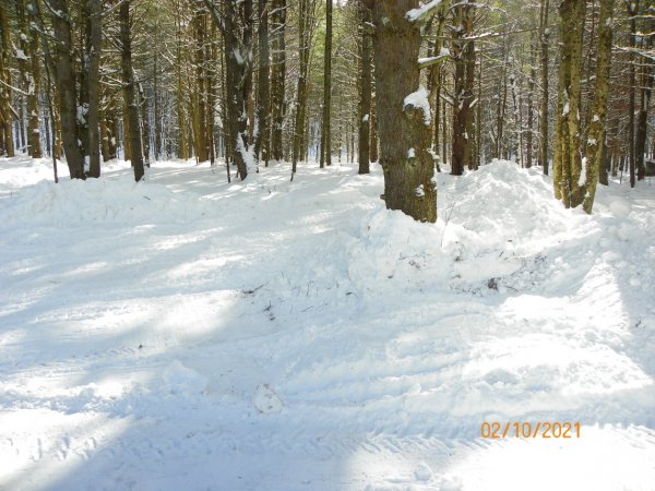 I removed some snow on the northeast of our house, with the sun getting stronger and March around the corner, it would just melt and follow the natural drain down into the woods. I pushed the snow deep into the woods on the northside of the house, if it melts and then freezes it doesn't matter. The first two pictures are before and the last two are after.