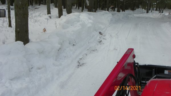 After doing some roof raking along the edge of our roof, I used the Mahindra 4540 to push back some snow left by the RTV and pushed back more snowbanks. 1536 is a before pic and 1538 is after, the rest are the banks I pushed back and one deer.