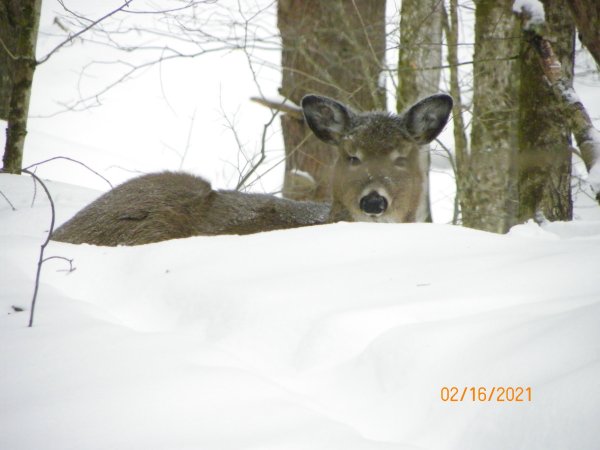 It's always nice seeing the fawns early on and then again in the winter, they look good but we'll see how much more snow we get the rest of the winter and how hard it will be on them.. They're still eating some red maple that came down.