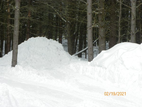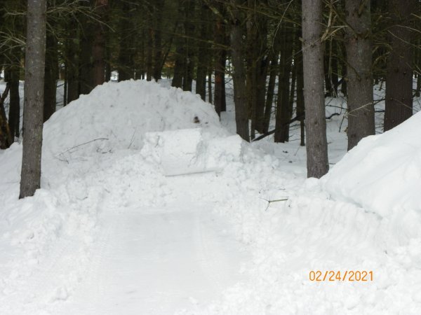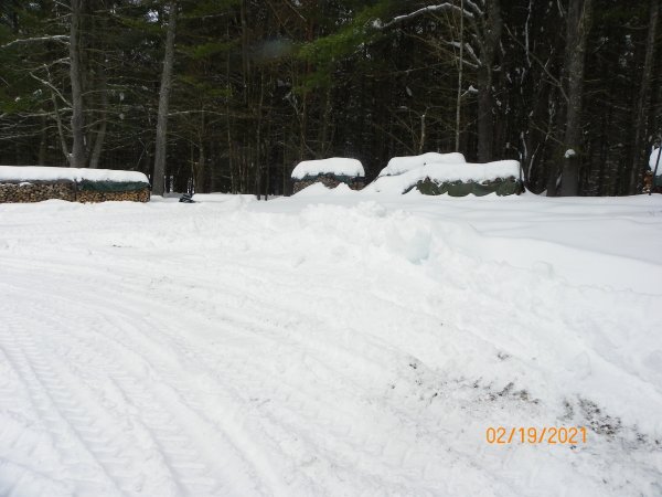 We have two storm systems coming in, one starts tomorrow night and the next system starts either on Thursday or Friday. I cut back the banks on one side of the driveway by 3 or 4 or feet, that should make us ready for the next two storms. I also plowed out what I call the natural drain so when the melt and the rain starts, it will be ready. I'm sure that this will be plowed out again but getting the snow out of there will help big time, especially if we get dumped on. I also plowed out the low side of the garage and then roof raked it some.