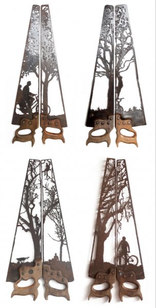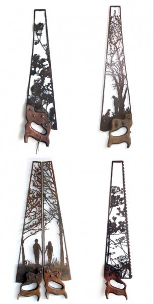 Very creative! I might try one. I have seen scenes cut into shovel and scoop blades and even cast iron fry pans and griddles, although I don't think I would use my vintage Wagner or Griswold!