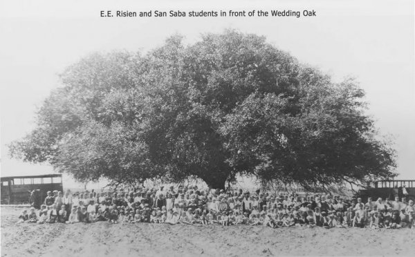 A few days ago I posted a photo of the famed Wedding Oak in San Saba, Texas, which is believed to be 1000 years old. An antique photo shows E.E. Riesen and students in front of the Wedding Oak roughly 100 years ago.