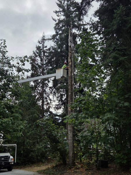 That guy is being held hostage here right now. The big guy and the big saw are getting a workout.