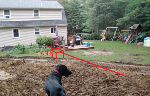 I gotcha, here's some highly professional sketches of my chit-uation :p The mystery structure is a good 30 degree angle to the tank. I know the tank is square to house as the lid was. And yes, we have 2 swingsets.... don't ask; at least they were free and I just had to disassemble, haul and re-assemble.