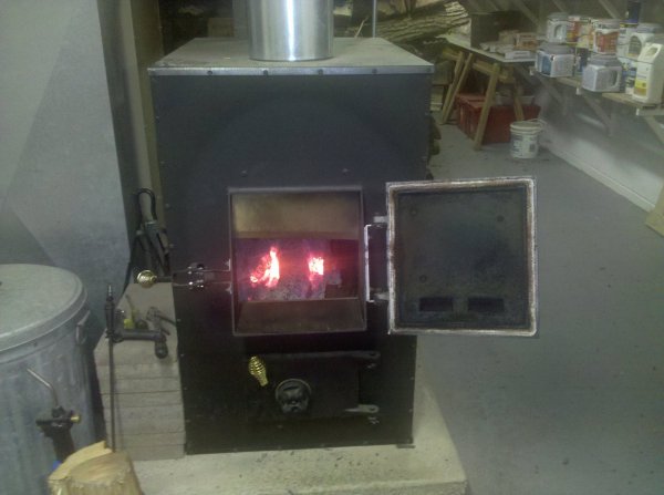 Here's a couple pics of my wood burner. It's an add on furnace. I bought it a while back ago from Menards for around $1k and it's worked well for me. Voglezang (sp?) Norseman 2500 is what it is. Was not fun getting down 20 flights of stairs either!