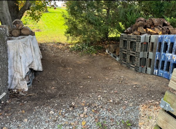 Finished splitting today. 3 trailer loads plus all the bl limb wood. Cleaned up by 2p for a family gtg. Boy am I sore!! Mulberry and BL was some heavy chit. First for me was taking a file to my splitters wedge. Found at least 2 nails today that weren’t touched by saw chain. Mulberry galore but a lot of pieces that were twisted/crotched/and a general pain in the ace. My chunks and uggs pile is huge, didn’t get a pic. So the roadside look of this stack is deceiving. As stated, I can go 3 splits wide on these new pallets. All splits that were 24” length I used for the top. I peaked the center up to almost 7’. Wrestling that specific piece of epdm is not fun but I got it spread crawling on the pile. I just need to get some cinder block on it for wind protection. Probably end up using another piece to fully cover the front. And the final tally I’m calling a very conservative 4.5 cord. The twisted and wavy mulberry made for stacking similar to what I remember Apple being like. Oak was fell Mar 21, mulberry was cut March 24 this year, cherry was fell 4/8, 4/13 was river birch, then the BL 4/14. I’ve replaced what I moved in my basement for this winter plus 1 cord so I’m all set. I can cherry pick scores for the best of the best.