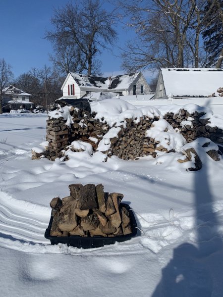 Not cutting or splitting as we’ve got close to 20” on the ground where I live, which is not typical but every few years seems to happen. I do have to haul a half cord or so up to the house from my stacks so sled it will be. I’ll try and snap some pics when I do. It’s been bitterly cold for us for a week or so, with single digit highs. Couple nights of -15f to -20f air temp. Currently -3f at 10:30 with the sun shining at least.