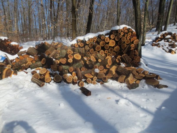 Split the oak bucked over the weekend today. Couple face cords worth. Added to the mound from yesterday. Ground had frozen again. No mud. Seasonably cold today. IMG_4124.JPG