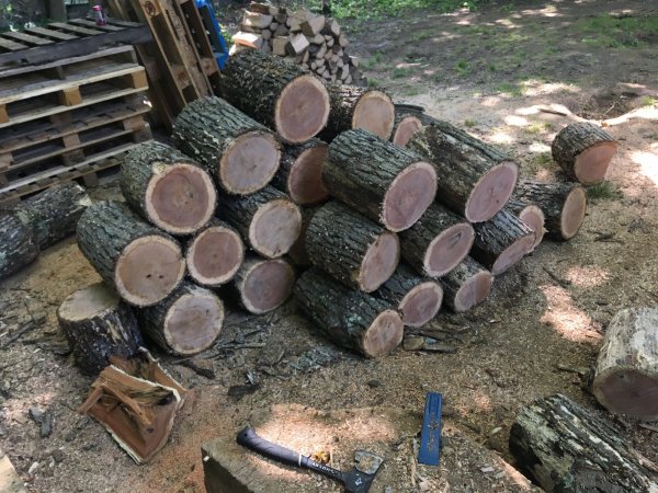 Alright, here’s the last of what I feel like grabbing at this point in time. I think I have about 3/4 of a cord between what I just processed and what I started with. In this heat it can stay just as it is, in a haphazard pile, until October I’ll stack it nicely when it’s cooler outside. I’ll cover it on rainy days at least. There’s enough here for my “experiment” and if I think of it I’ll update you guys in the future to let you know how it burns. I’ve had my share of hand splitting for today.