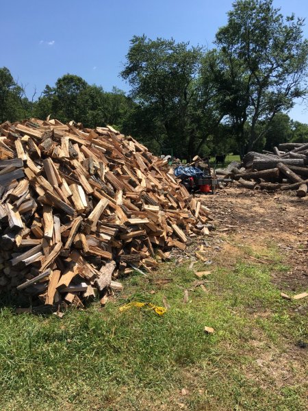 Been plugging away when I can. Haven't had as much free time as I had hoped. Today is 90 degrees, 32% humidity according to weather ap on my phone, with a steady 10-15 mph breeze. Great weather for drying out the firewood! Been cutting for 4.5 hours now but it's time to move some logs around and deal with a big dead oak I cut in moms Woods last night...basically keep working but get out of the sun.