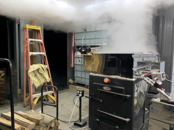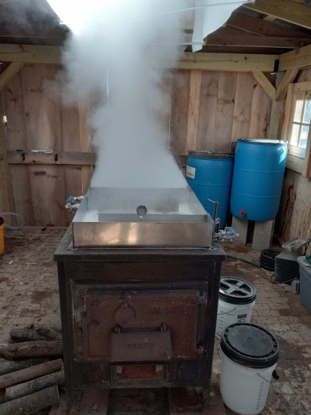 Looks great ! Great steam !! We finally got a few days off up our way. Saps just now starting up again. We had boiled so much in one week...that we had to clean everything like it was the end of year. Tanks.. pan....ro flush...everything ! We made almost 30 gallons of syrup in one week...which is what we made all of 2022 season. Crazy !