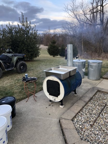 Fired up my homemade evaporator last night. Pic was just after starting my fire. Pretty pleased, busy realizing the evaporator wants more firewood than I fed it. Learning along the way. Tons of fun! DA4FA1E9-4C2F-40C7-AFDD-B8C6BCAF7408.jpeg