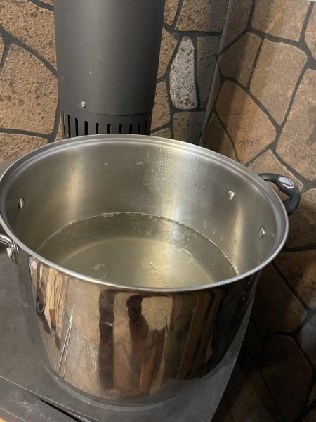 An experiment of sorts. A friend of mine tried this last week and was happy with the results so I figured I’d try. The sap has been slow for the past couple weeks and I only collected 10 gallons. Rather than store it another week +, I figured I could passively heat it on my wood stove and slowly evaporate the water over a few days, then do the final boil on my regular stove. My buddy said it’s a slow process but it works, even producing syrup that’s lighter in color. I’ll let you guys know how it turns out.