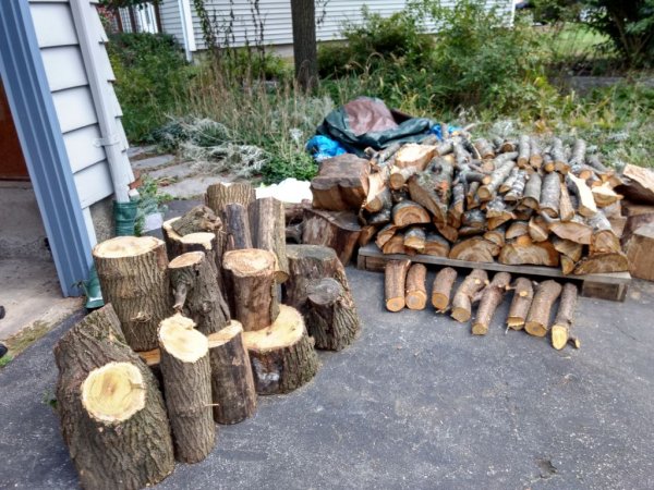 So, as I was perusing the red oak honey hole, I spied some non-oak. There was some pine mixed in, and then I saw it - Black birch! So, I began clearing and working my way through the jumble of tree top branches to get at the birch logs. Cut some to my 16" length and left some others longer. I piled them separate from the oak I've been scrounging. I expect to be splitting the thicker pieces and cutting the smaller limbs to length in a couple of weeks. Before cutting the limbs to length, I'll run the saw along the length of them, on opposite sides, to open up the bark and let the wood dry out.