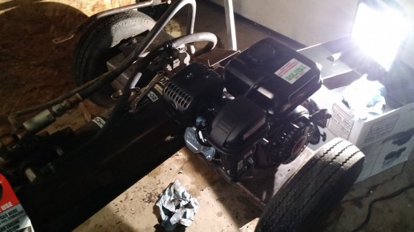 Ok no real progress on the actual pile in the driveway, but I will work on it tomorrow. Here's what I did today. So the Tecumseh was too wide to fit on the splitter chassis. Predator 6.5 HP, $99 at harbor freight with coupon. Stuff to work on today. It looked like it would just bolt up. And it did. With a new 3/4" L075 Lovejoy coupling. It started on the first pull. Amazing. Time for a new glarus cabin fever. Then on to the next project. Finishing the new u joint for the front driveshaft on ATV. My buddy started it, took the old one out, we just had to finish the job and put the new one in. All done. Then to start on the LED lights for the ATV. I think it'll work great. I just cut out the light housing that was missing, and mounted the light on the factory bracket. And on... The 18w LEDs are very bright. All set to split tomorrow...