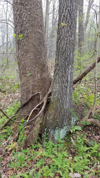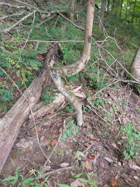 Finally remembered to get a pic for Backwoods. Not near as impressive as the above pictures, but still pretty cool. The tip of the arch has died back a little bit over the years. The bottom part is about 26-28" dbh, the upshoot stem is around 16-18".