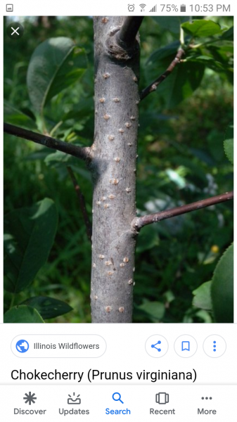 Does it ever get the racoon poop on the stick fungus clumps on its branches? Chokecherry also only has a single stone in the fruit vs buckthorn which has multiple seeds. Buckthorn will also have an orange-ish inner bark color if the outer bark is scuffed.
