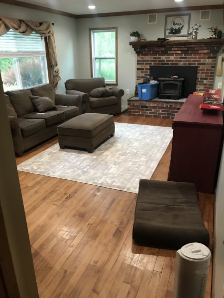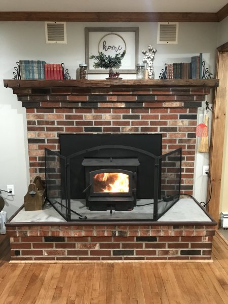 So got sidetracked on the updates. Here’s the room almost done, just a couple finishing touches needed.... A couple black smithed bookends. A couple barn beam shelves with black smithed strap hangers to match the mantle.