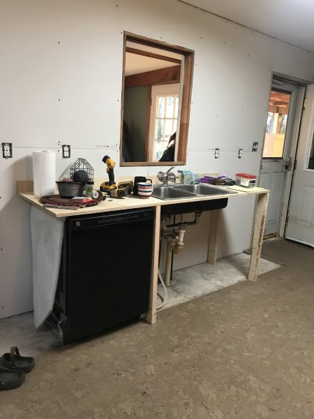 Looks great, the only tip I would mention and it’s too late for you. When sheet rocking, and doing kitchen lay a full sheet between the top of the Base Cabinets and the uppers. That way you have no tape scene where all the outlets and top of the counter is. An old timer showed me that trick