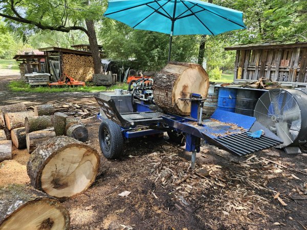 We then got a County Line 30ton fast cycle splitter from TSC. It was a significant upgrade, old splitter was 30 sec SLOW. 0606221059a_HDR.jpg