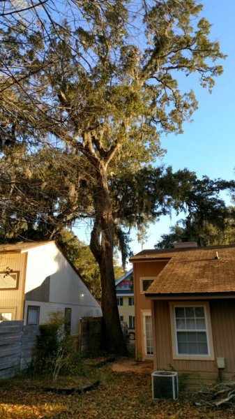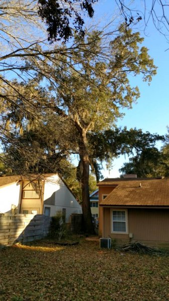 Didn't want to but I had to get the police involved on tree contractor who ripped us off. He was a referral from family members who used him in the past. He used that to talk us into paying him up front. We never saw him again it's been over 2 mths. I should have smelled a rat due to his price. It's one of our rental properties so at least we can right the 1500 off @ tax time. I learned a lesson again I was being greedy and lock him in on the price. My closest bid was 5000. Here's a few pics of the tree. Our rental is the one on the left.