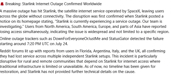 My Starlink was down for 2.5 hours today, weird! And glad yours is back up.