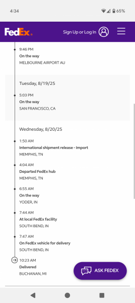 NO EXCUSES from any shipping company delivering within the US boarder. They used to be my most hated but lately they've been my favorite, FedEx got this package from Australia to Buchanan, MI in 3 days!