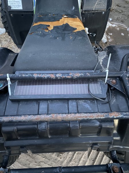 I use a solar charger to maintain a larger automotive battery that I use to jump off equipment (tractors, mowers, etc.). I also move it around to equipment in rotation as needed so batteries don't get too low.
