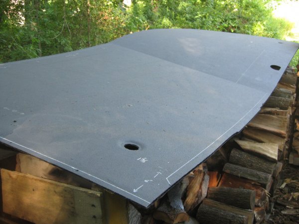 Back in the Spring i scrounged this 4'+ x 11' folded currugated plastic sheet...1/2" thick. Turns out its the liner from a new van. Heavy but sheds water nicely. IMG_1599.JPG IMG_1600.JPG