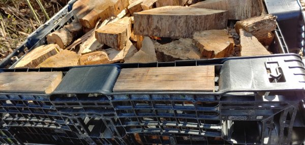 Ok played with the pups a bit outside then I hauled the last couple sled loads into the shed from the trailer. I also used my jig and cut all of the too long splits down to 17"