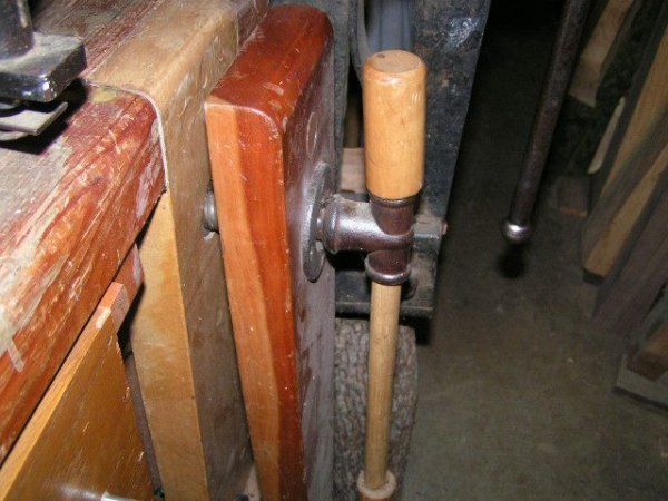 Was fun boring a 1.125" hole 9" deep for that vise screw,tapered at far end,getting everything lined up & chiseling out a small notch so the iron locking collar wouldn't twist in the mounting hole....:hair: